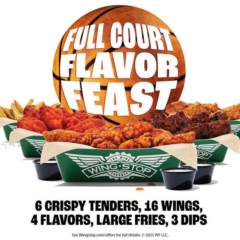 75 boneless or classic (bone-in) wings with up to 5 flavors, 3 large fries, 3 veggie sticks and 6 dips. (feeds 9-13).